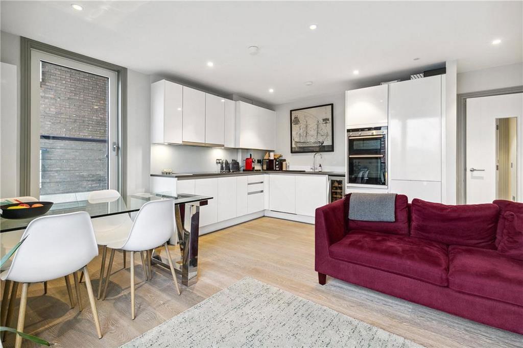 This apartment has been finished to an exceptionally high standard and offers a great contemporary living space. Comprises an open plan reception with a fully fitted kitchen with high-quality built-in appliances, induction hob and dishwasher, two large double bedrooms with ample storage and two contemorary bathrooms. It also benefits from quality wooden flooring, private balcony, stunning river views, double glazed windows and a 24 hour concierge service.