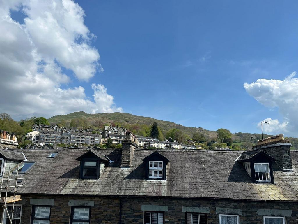 Three piece white suite comprising of panelled bath with electric shower over, wash hand basin and WC. Great views over St Mary’s Church to Loughrigg. Useful storage cylinder cupboard.