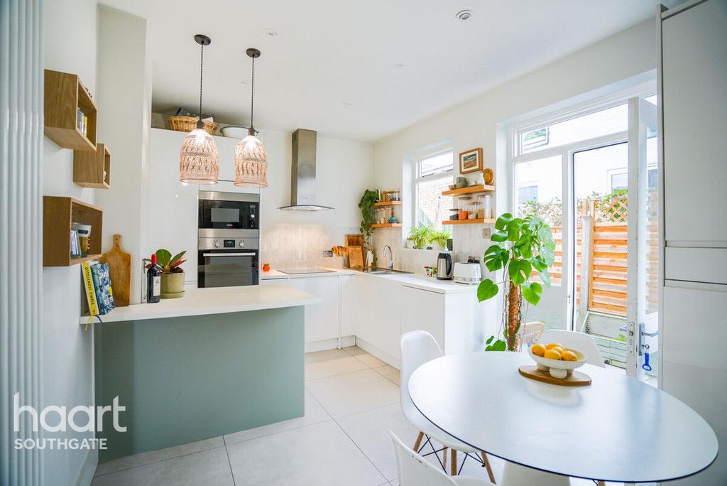 A spacious kitchen-diner provides a modern, well-equipped hub of the home, complete with integrated appliances and a handy breakfast bar, while a private paved patio offers a calm spot to relax outdoors. With its standout location, characterful interiors, and thoughtful layout, this is an ideal first-time purchase in a thriving neighbourhood.