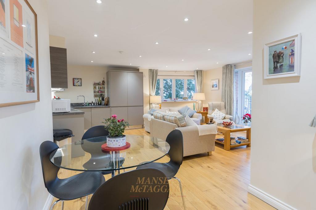 The living space briefly comprises; entrance hallway; dual aspect living room/dining room; modern fitted kitchen with an integrated dishwasher, fridge freezer, washer/dryer, hob and oven plus French doors leading onto a balcony, In addition to this there is a well proportioned master bedroom with an en suite shower room; double guest bedroom and a family bathroom concludes the accommodation.