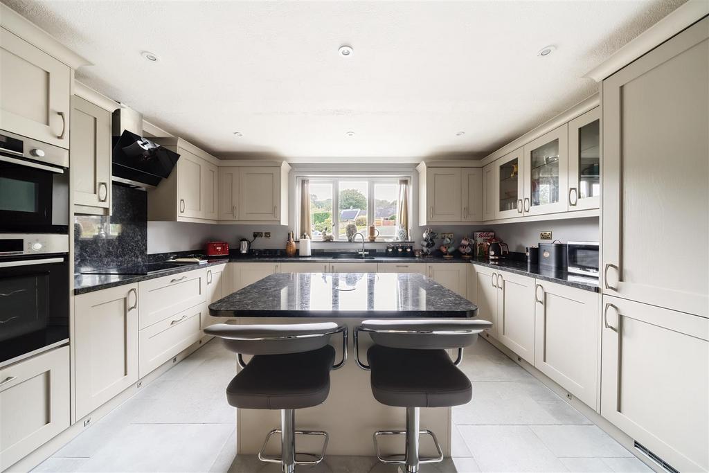 Accommodation includes; entrance porch, a generous entrance hallway, living room with open fire place fitted with Storax multi fuel stove and French doors to the garden, a superbly fitted kitchen with a range of units under granite worktops and quality integrated appliances, which in turn leads to a separate utility room with cloakroom and access to the garage.