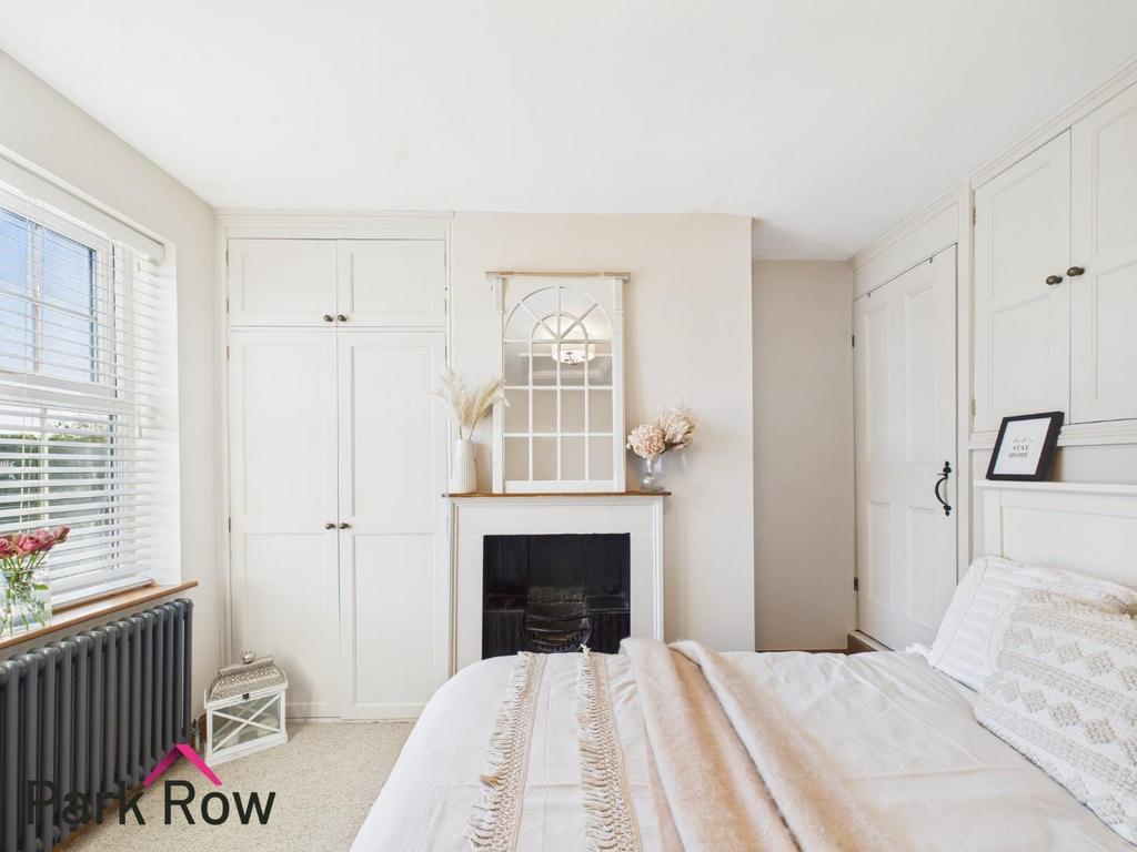 Bedroom Two - 2.89 x 3.22 (9'5" x 10'6") - A double glazed window to the front elevation, a central heating radiator, a built in wardrobe, a cast iron fireplace set within a white surround with a wooden mantel and internal doors which lead to storage.