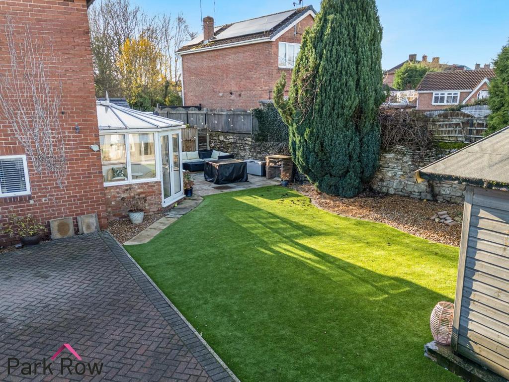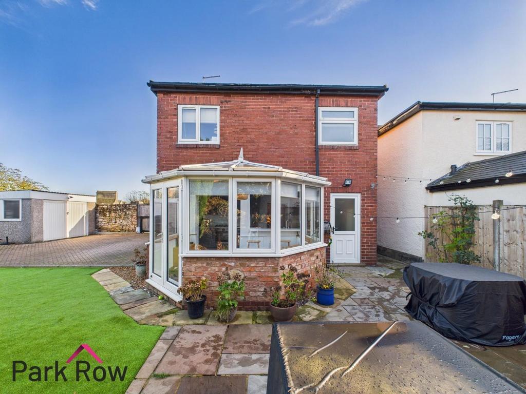Rear - Accessed via the electric wooden sage green gate at the front of the property which leads directly to paved area providing off road parking for multiple vehicles, the patio doors from the sunroom lead out on the lawned area and the uPVC door in the kitchen lead out on to a further paved area with space for seating.