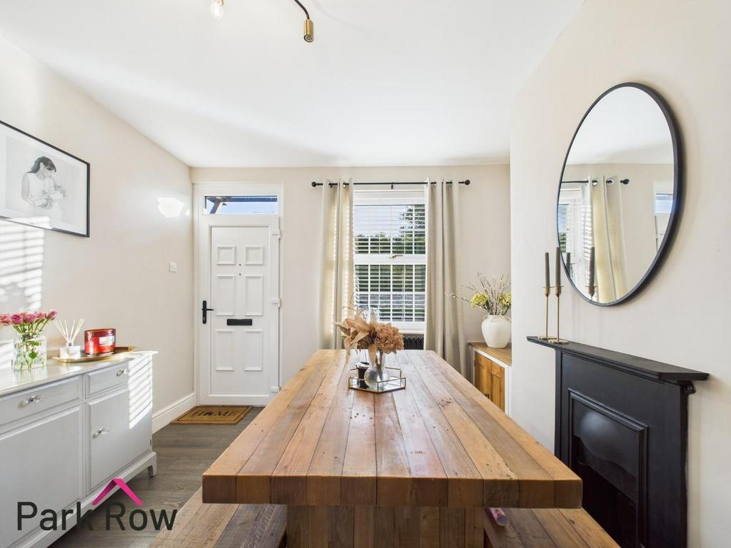 Dining Room - 3.31 x 3.26 (10'10" x 10'8") - A double glazed window to the front elevation, a central heating radiator, a black fireplace with black surround, an internal door which leads to the staircase to the first floor accommodation and an internal door which leads into;