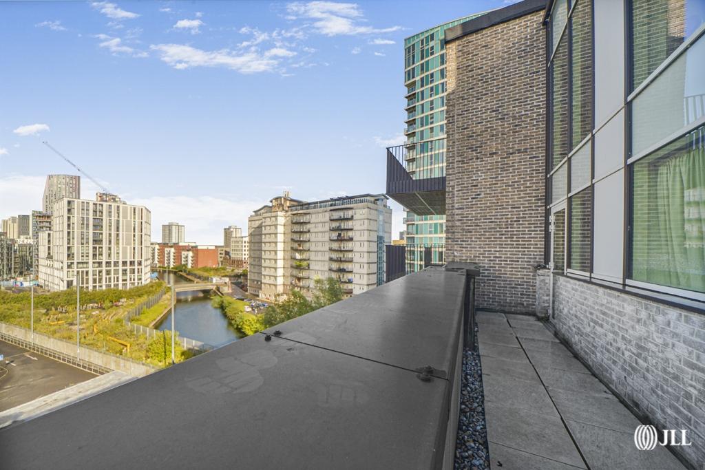The apartment showcases ultra-modern interiors throughout, featuring a fully integrated kitchen that seamlessly blends form and function. Both bathroom suites are fully fitted and elegantly tiled, reflecting the development's commitment to quality finishes and attention to detail. The south-facing balcony provides a private outdoor retreat, offering abundant natural light and an ideal space for relaxation while taking in views across this dynamic area of East London.