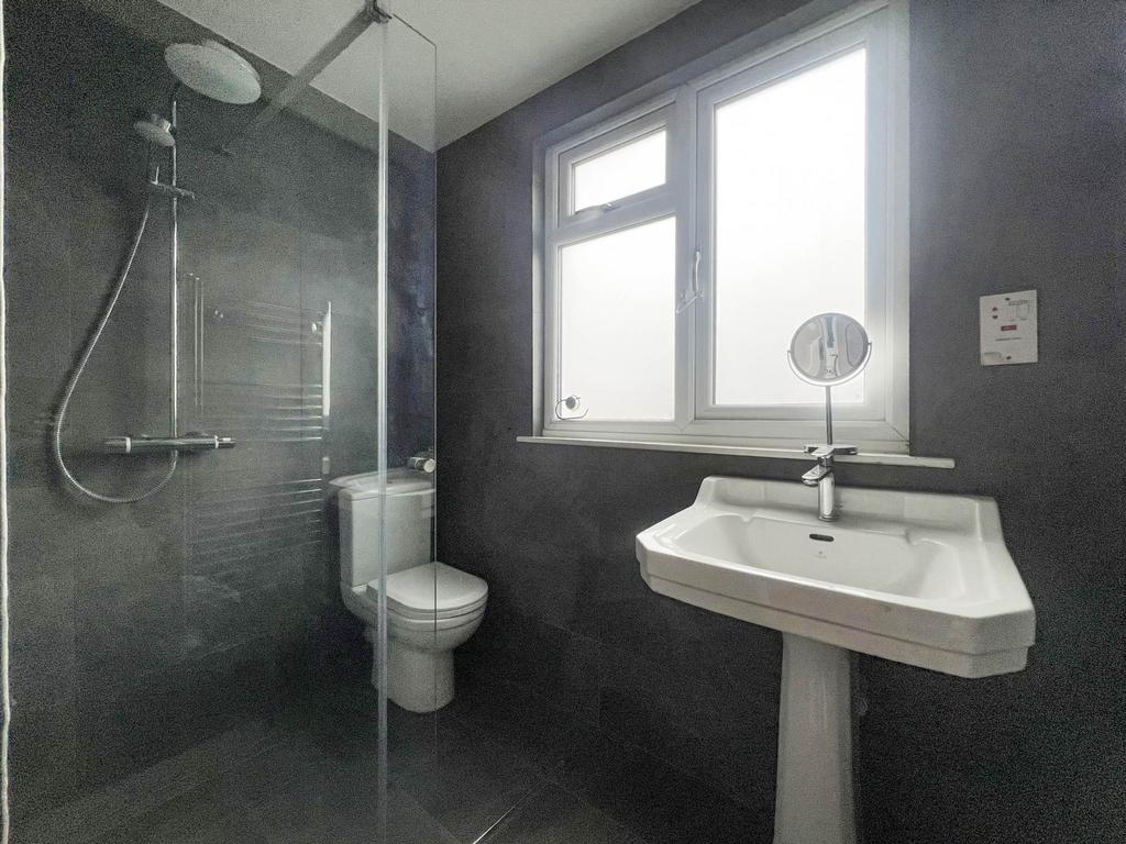 On the first floor there are three bedrooms and a modern family bathroom. The rear bedroom enjoys garden views and fitted wardrobes, the front bedroom benefits from an attractive bay window, and the smaller bedroom also has a window, making it a bright and comfortable space. The family bathroom is finished in a modern style, with a spacious shower area and a large bath.