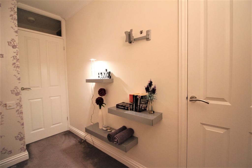 Fully furnished large double room with a large window to the front aspect of the property, built-in double wardrobe, radiator, TV point, fitted shelves, door to more storage. The room comes with super king sized double bed and mattress. The room shares a bathroom with two other rooms.