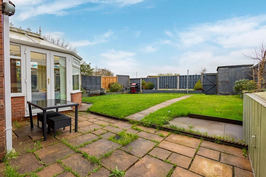 The rear garden enjoys a private aspect, backing onto the green and offering a rare sense of openness—an ideal outdoor space for relaxing, socialising or watching children play.