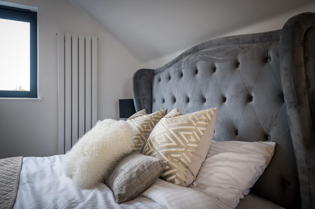 The second floor hosts two further double bedrooms, thoughtfully separated by a stylish bathroom finished with polished porcelain tiles and backlit mirrors.