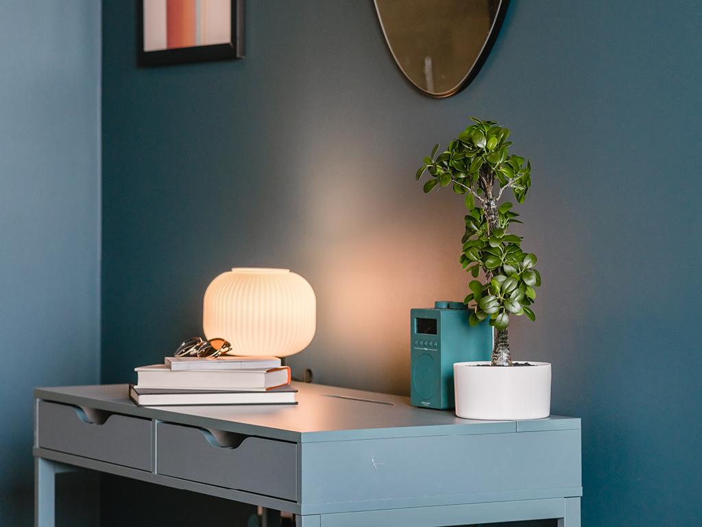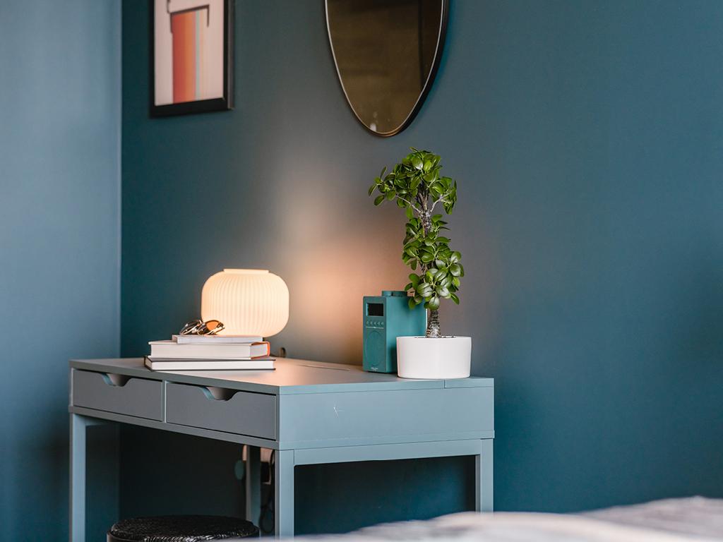 Light and spacious with floor to ceiling windows and blackout blinds. Plush three-seater sofa, media storage unit with 50 inch Samsung smart TV and coffee table with mirrored tops.