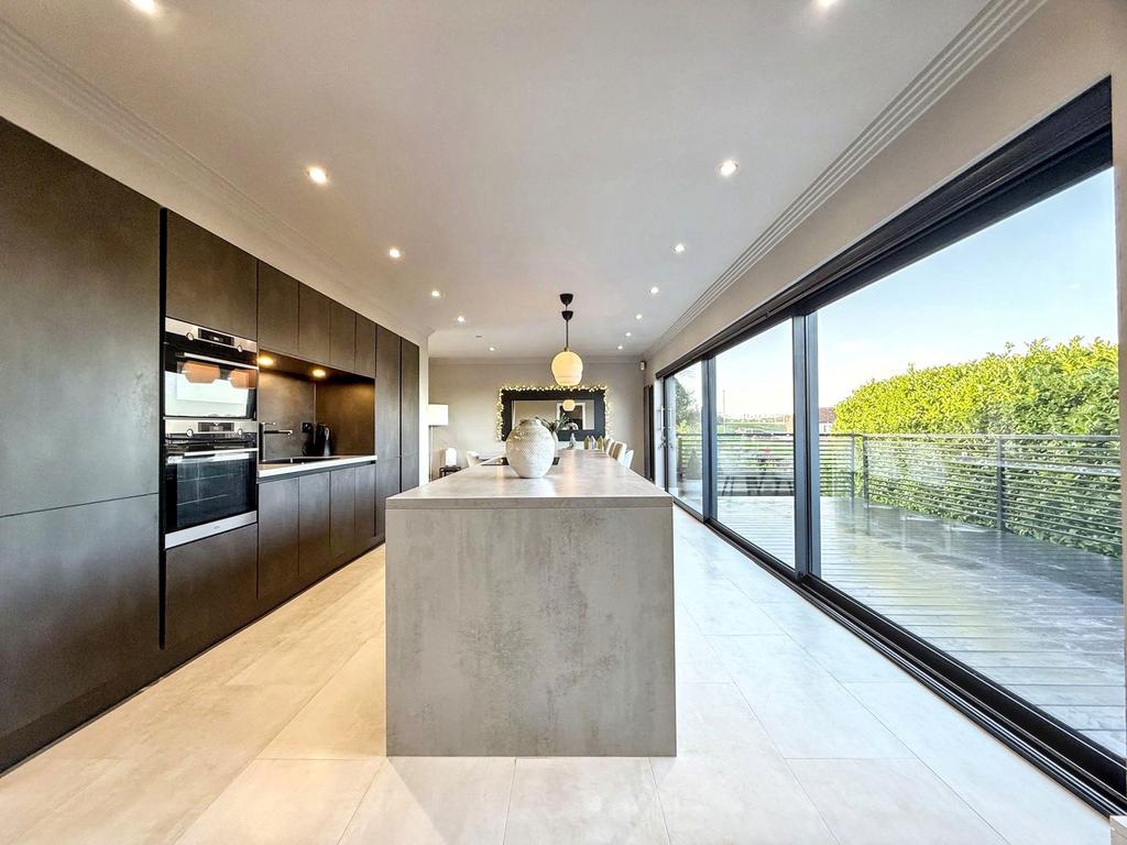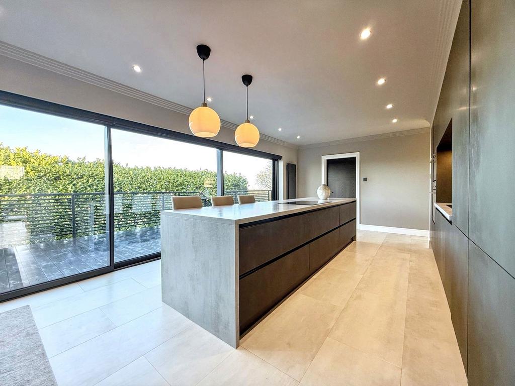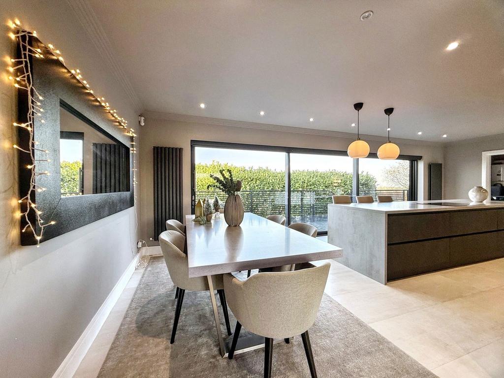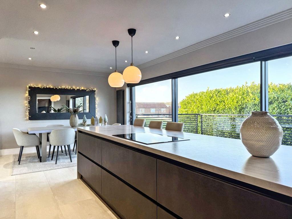 6 meter double-glazed sliding doors, full rang of Base and Wall units, oven and combination oven, intergrated full height fridge and freezer, single bowl sink. Island Including induction hob, 4 sets of pan drawers, breakfast bar sitting area, two designer radiators, spotlights.