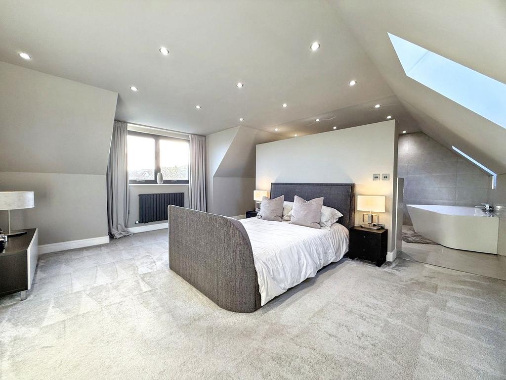 With a double-glazed window and Velux style double glazed window, modern designer radiator, carpet and spotlights. Room also boasts a seperate dressing room and en-suite.