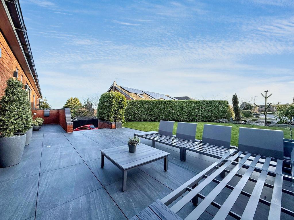 Externally, the property enjoys a block-paved driveway leading to the garage, landscaped lawned and paved areas, and a generous wraparound garden, making the most of the corner plot position.