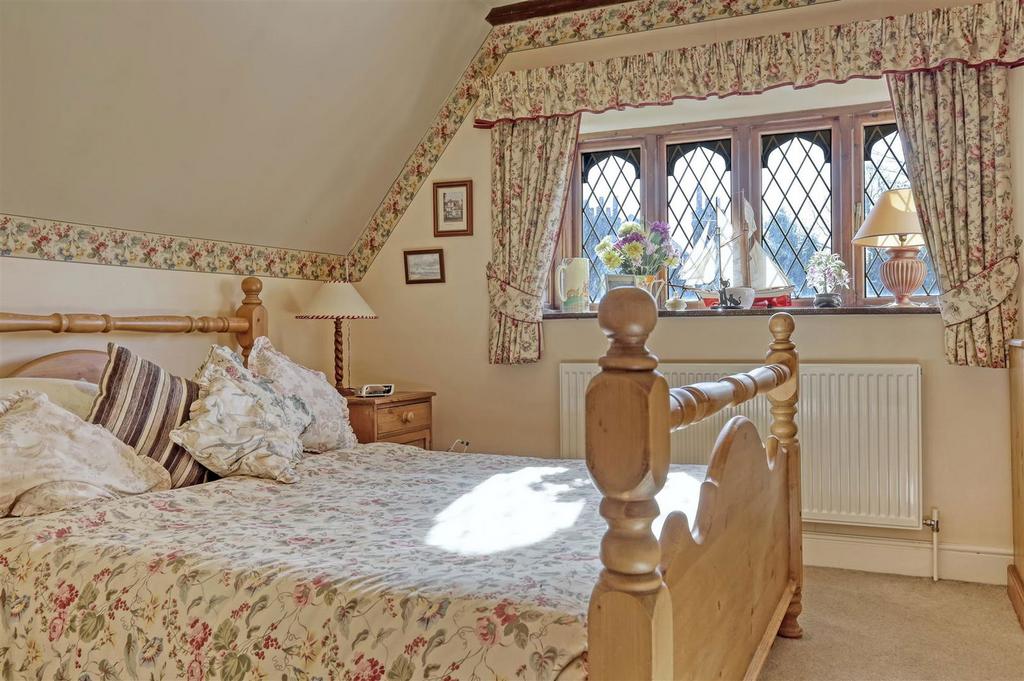 Lovely dual aspect room with a leaded light, double glazed square bay window with fitted window seating to the rear overlooking the garden plus two further windows to rear and side. Three radiators. Open studwork to an off-set, cosy 'snug' area.