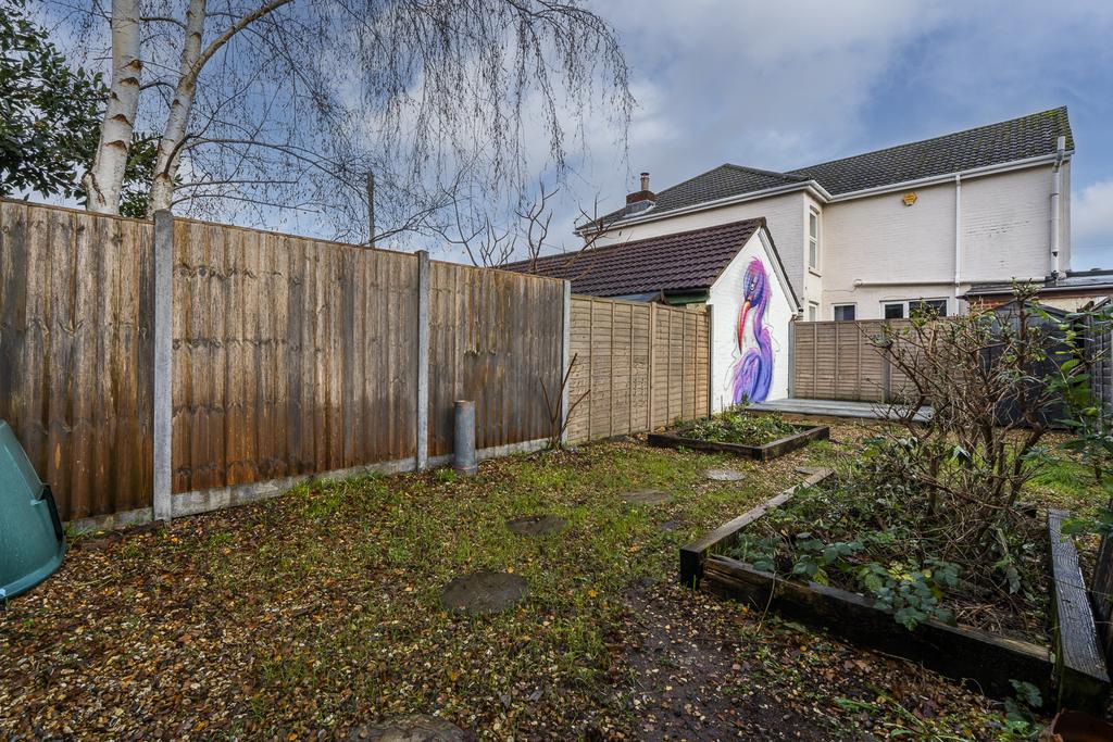 Shared external staircase leads to private garden. Laid to shingle. Raised flower beds. Decked area. Wooden shed. Fully fenced.