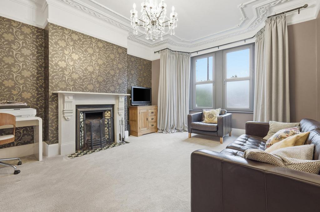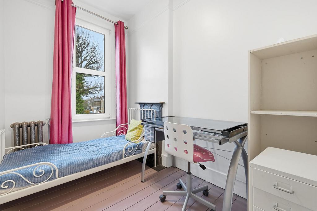 Upstairs, the first floor hosts three bedrooms; two spacious doubles and a smaller single, each adorned with period fireplaces, cast iron radiators, picture rails and wooden floors, providing a traditional feel throughout. The family bathroom continues this timeless style, featuring classic metro tiling, black-and-white mosaic flooring, a period-style suite with overhead shower, and a cast iron radiator. Additional storage is available in the loft, which also provides scope for further expansion via a loft conversion (STPP), where the lovely leafy views to the rear could be truly enjoyed.