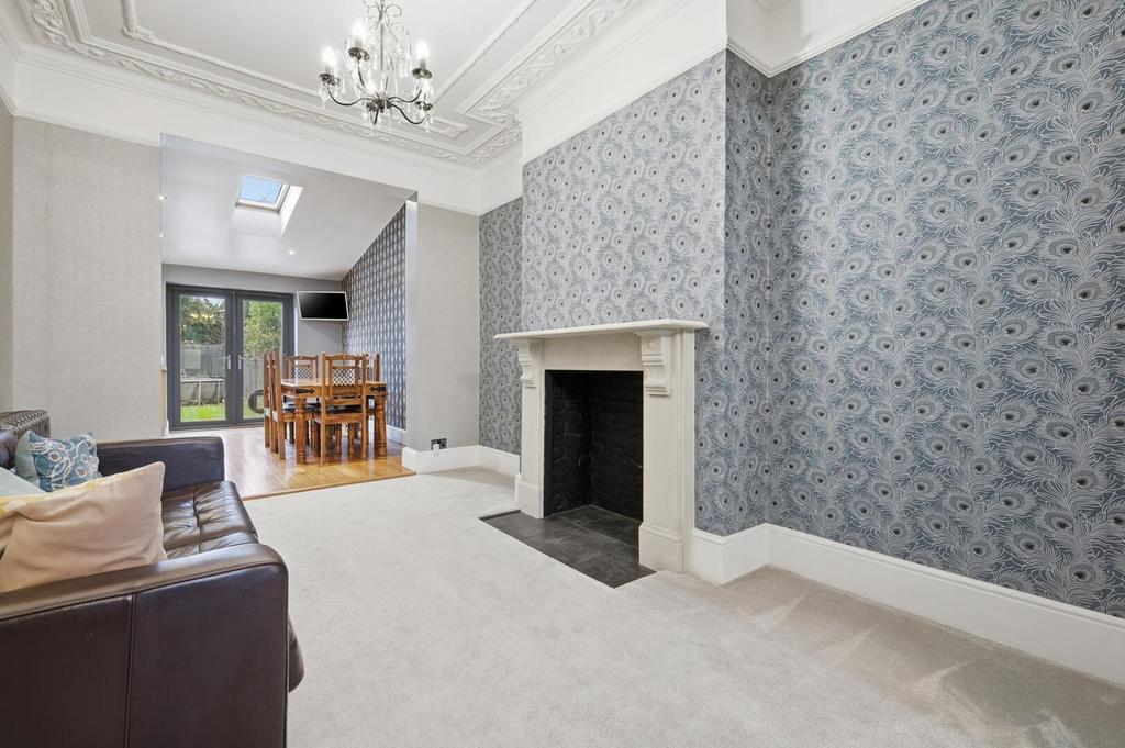 Nestled within the ever-popular Aldersbrook Estate, this elegant three-bedroom Edwardian terraced home enjoys a truly enviable position, just 0.5 miles from the Outstanding-rated Aldersbrook Primary School. Manor Park Station, offering swift Elizabeth Line connections, sits around 0.7 miles away, while handy bus routes along Aldersbrook Road provide further ease for those who appreciate the area’s relaxed, village-like feel. Perfectly placed in the heart of the Conservation Area, the home is surrounded by the natural beauty that makes this neighbourhood so loved. Wanstead Park is only 0.2 miles from your doorstep, ideal for peaceful woodland walks, scenic lake views, and tranquil strolls through to Central Wanstead. Equally close, Wanstead Flats (also 0.2 miles) offers wide open green spaces, perfect for runners, dog walkers and families. And with the recent arrival of the brand new Tesco Express on Aldersbrook Road (0.3 miles), everyday essential (and last-minute dinner ingredients) are always within easy reach. The home’s classic exposed brick façade, charming mosaic pathway and the bespoke front door makes a wonderful first impression, reflecting the quintessential character of Aldersbrook’s Edwardian terraces. Inside, the ground floor has already been thoughtfully extended to create a spacious and versatile living environment. The two original reception rooms, complete with beautiful plasterwork, have been opened through to one another, allowing natural light to flow from both front and rear.