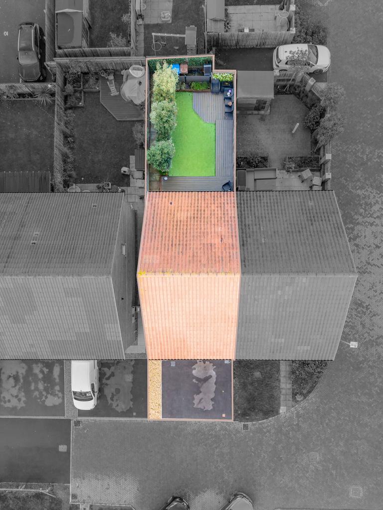 The rear garden is fully enclosed and designed with low maintenance in mind, featuring artificial lawn and smartly laid composite decking on both ends—ideal for entertaining or for younger children to enjoy safely. Mature planting, including evergreen trees and well-tended borders, adds interest and privacy along the fence line. Whether you're working from home or enjoying weekends with friends, this garden gives you outdoor space without the usual upkeep. To the front, the property offers off-street parking for two vehicles.