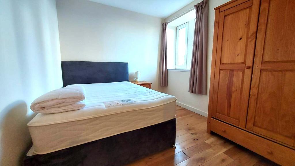 This second floor flat comprises of; entrance hallway with a storage cupboard; a double bedroom with a new bed, mattress and storage; lounge with a sofa set; bathroom with a shower; and a kitchen with a fridge freezer, electric hob and cooker, microwave, and a washing machine.