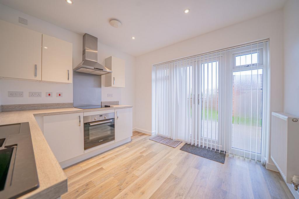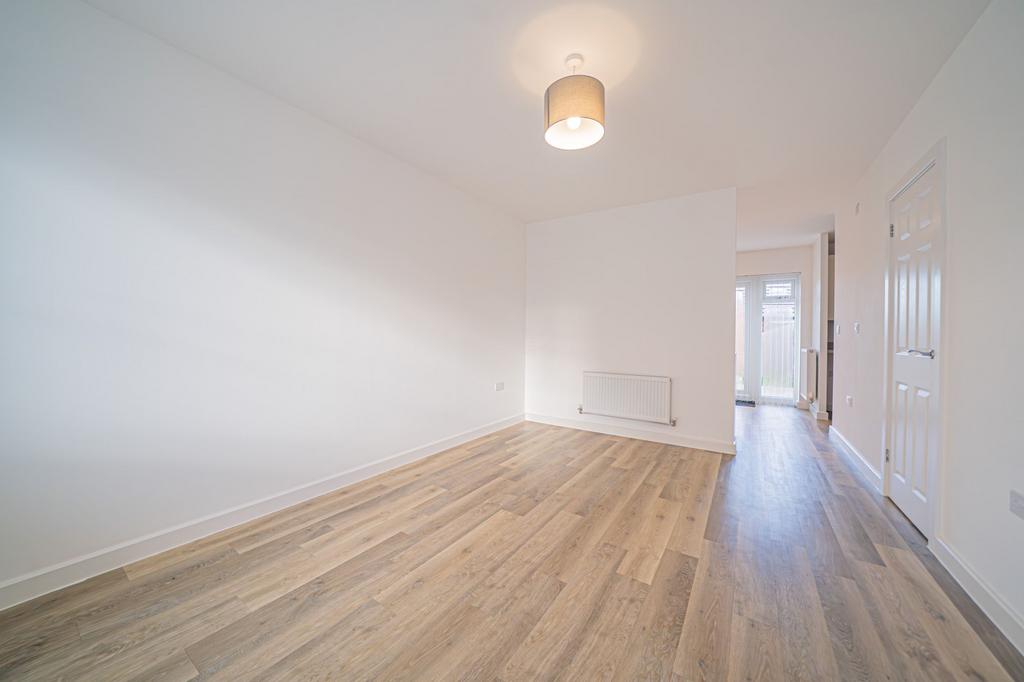 Upon entering, you are welcomed by a spacious living room that benefits from an abundance of natural light, creating a bright and inviting atmosphere. The neutral décor and generous proportions provide a versatile space, perfect for relaxing or entertaining guests. Adjacent to the living room is a fitted kitchen, thoughtfully designed with ample storage space and modern cabinetry. The kitchen also offers pleasant views of the rear garden, making it a practical and enjoyable space for meal preparation.