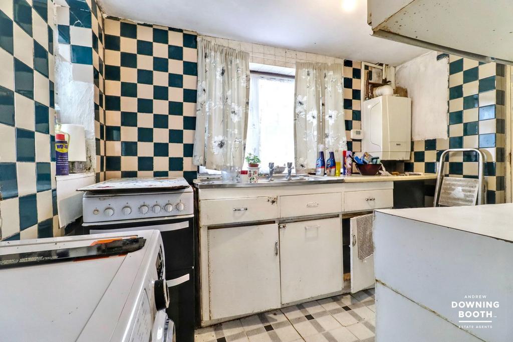 The kitchen is fitted with matching base and wall units, together with a stainless steel sink and chrome taps. The walls are tiled, and there is space and plumbing for a washing machine. This room also houses the gas-fired combi boiler and benefits from both side and rear-facing double glazed windows.