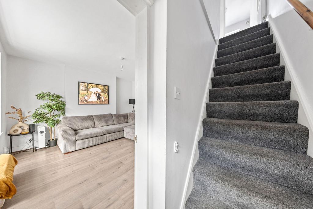 Upon entering the property, you step into a dedicated entrance hallway that immediately creates a sense of separation and privacy from the main living areas. This useful space is ideal for hanging coats and storing shoes. From here, the hallway opens into a spacious and beautifully presented living room. The room is designed with comfort in mind, easily accommodating a large corner sofa while still leaving ample floor space for additional furnishings and personal décor. A charming bay window floods the room with natural light throughout the day, enhancing the warm and inviting atmosphere, while a built-in storage cupboard provides a practical solution for keeping everyday items neatly tucked away. Moving through to the kitchen/diner, the property continues to impress. The kitchen offers a generous amount of cupboard and worktop space, making it highly functional for everyday cooking as well as entertaining. Its layout allows for easy movement and organisation, with appliances and storage positioned for maximum convenience. The dining area sits comfortably alongside the kitchen, large enough to house a proper dining table, creating a sociable and versatile environment. A patio door, set at the rear of the kitchen, opens directly onto the garden, allowing natural light to pour in and providing a seamless connection between indoor and outdoor living.
