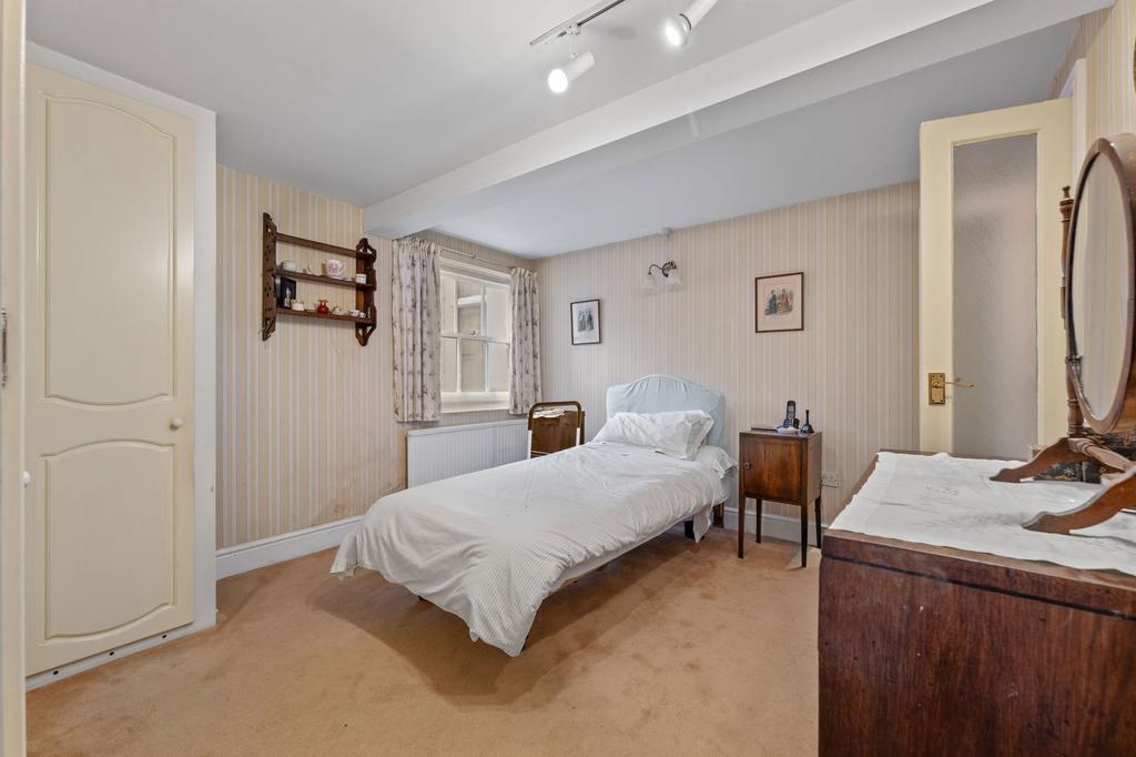 Currently arranged as a study, Bedroom 3 is a flexible room located directly off the kitchen, making it ideal as a home office, hobby room or occasional guest bedroom. A large sash window provides excellent natural light and offers a pleasant outlook towards the gardens and neighbouring period buildings.