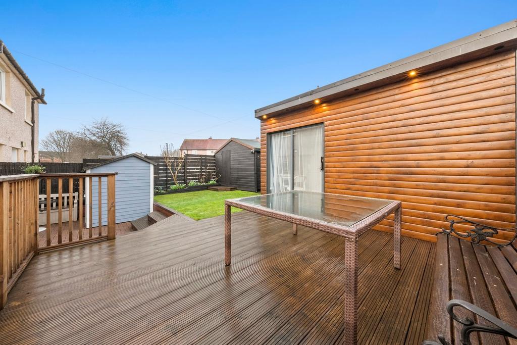 - Landscaped garden with feature deck and Professionally constructed garden room built in 2023 and includes the corner sofa and coffee table