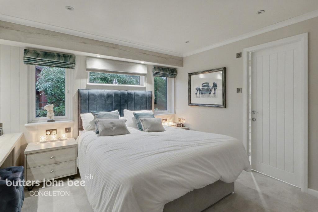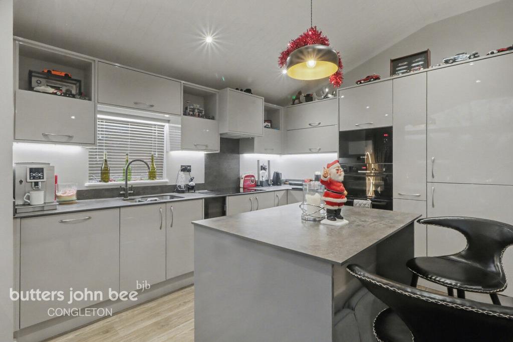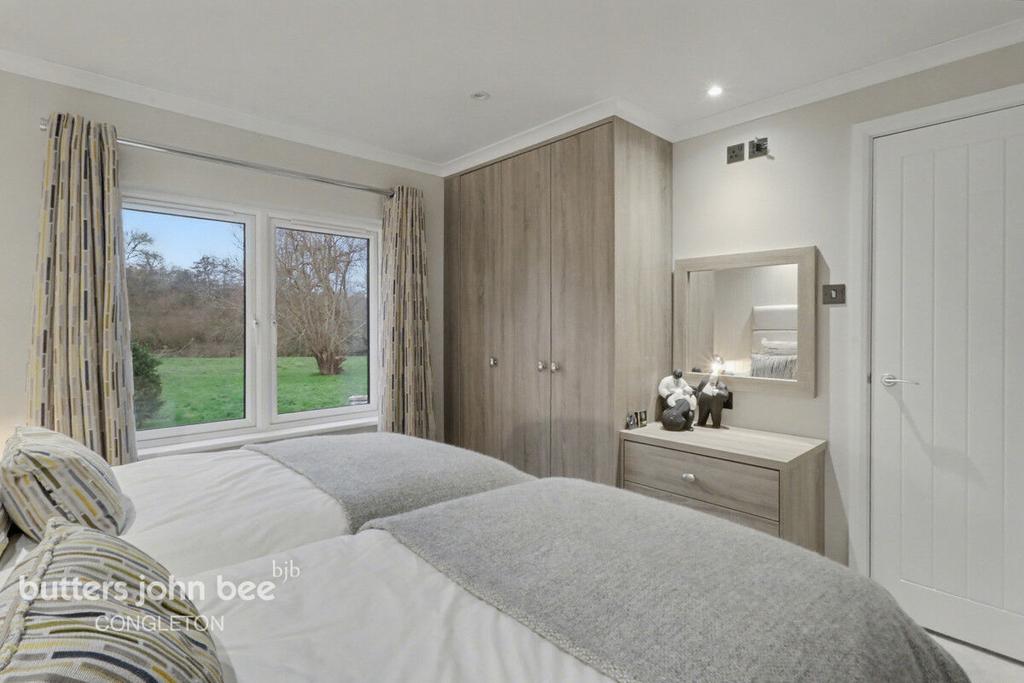 Externally, this property excels at accessible, tranquil living: a fitted ramp provides easy access to the deck and main entrance, while a large decked area wraps around two sides, offering an idyllic setting for dining, entertaining or simply relaxing. Steps lead you down to the green and the River Dane, where the serenity of this location truly comes to life. Additional benefits include off-road parking for two vehicles, an EV charging point, a secure workshop/storage area, Cat5 wired with fibre and TV and both feature and security lighting.