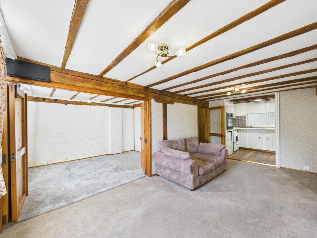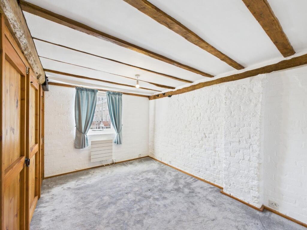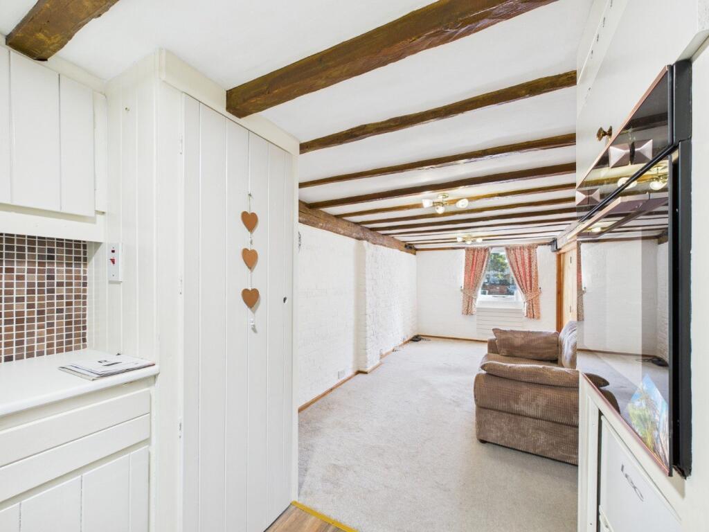 The interior of this property is beautifully presented, and has characterful original features, including exposed beaming. The mid-floor property comprises a spacious living/dining room, fitted kitchen, one double bedroom, and a shower room.