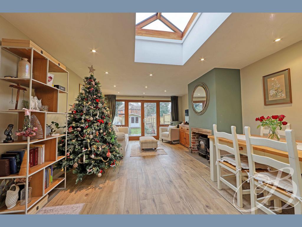 The impressive home is set back from the road behind a neat front garden, just 250 yards from the centre of the village. The charming property has been extended on the ground floor, now offering a fantastic 18ft lounge diner with a lovely skylight and double doors onto the garden. The bright space boasts a modern porcelain tiled floor and a fantastic wood burner for cosy winter nights.