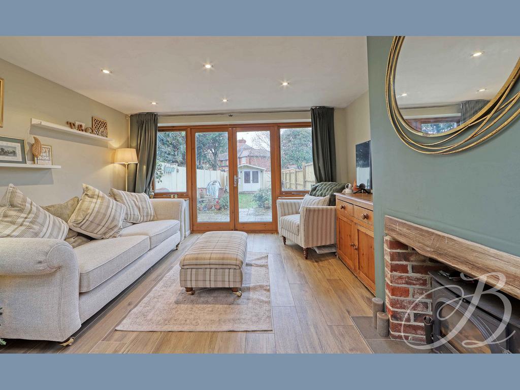 Outside, the garden is a real feature: a large patio area for barbecues and entertaining leads into the long lawn which faces west and receives plenty of sunshine. To the rear is a fantastic new outbuilding with power, great as a hobby room, gym or home office. A gate leads to the two parking spaces behind the garden.