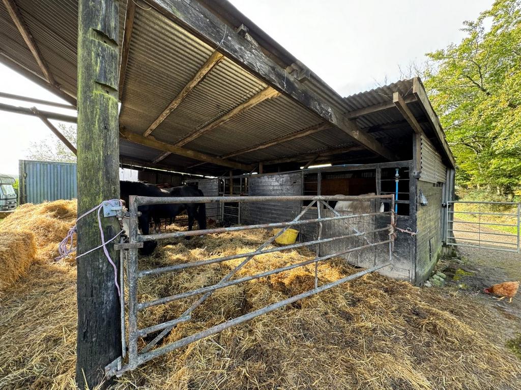 7' 3" x 17' 7" (2.21m x 5.36m) concrete base, zinc cladding, dual aspect windows to front and side, side rain water collection point with electric pump for water supply to stables.