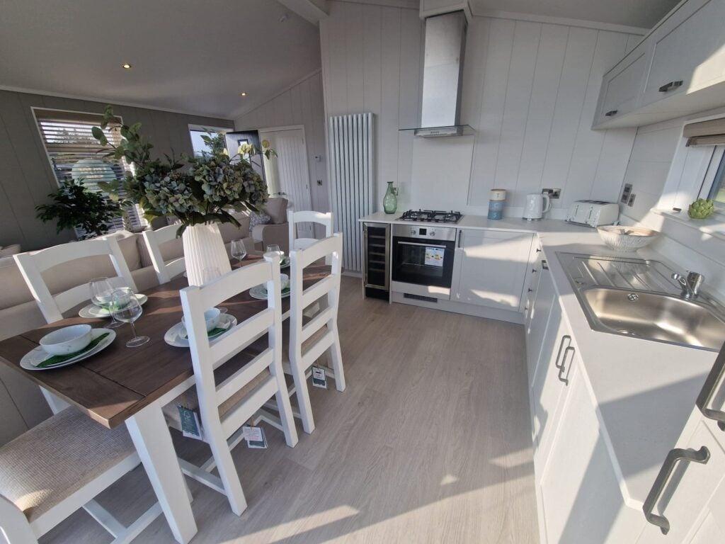 Discover the Prestige Oyster Catcher, a delightful holiday home perfect for family getaways, featuring a spacious lounge and kitchen diner equipped with all essentials including a washing machine and dishwasher. This home comfortably sleeps six across three bedrooms, offering the luxury of an en-suite shower in the master bedroom along with a separate family bathroom. Decorated in soothing creams and pastel blues, it boasts a modern yet beachy ambiance, enhanced by its stunning marina location. The design includes expansive glass windows that flood the space with natural light, making it a bright and welcoming retreat, complete with a 20-year license.