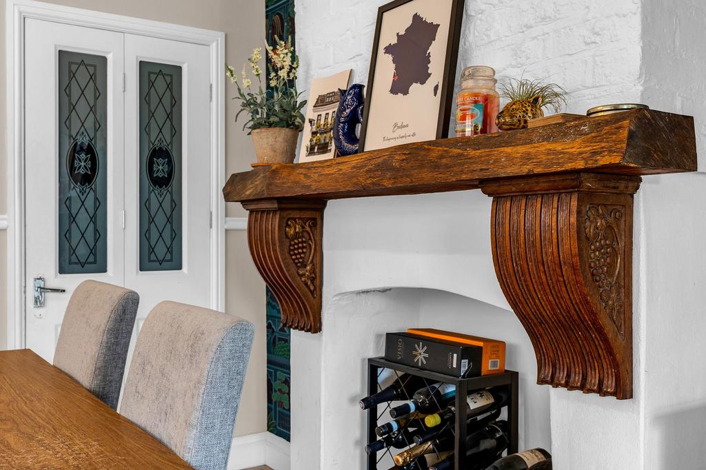 With Upvc double glazed window to side aspect, under stairs storage cupboard, feature fireplace, radiator, wood flooring, open to: