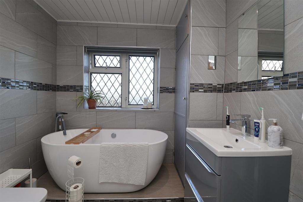 Family Bathroom - Recently fitted and finished to a contemporary standard, the bathroom features a freestanding bath, a sleek walk-in shower, modern tiling and quality fixtures. The design creates a calm and luxurious spa-like atmosphere.