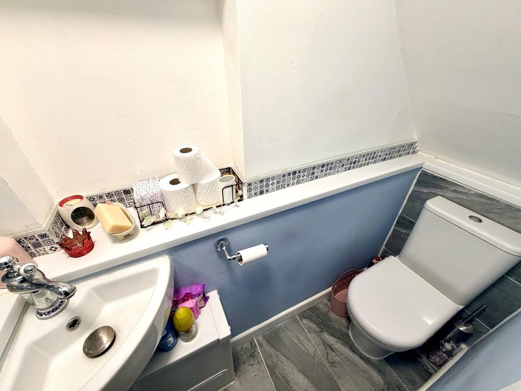 Window to side and access to boarded roof space with light point, power points and Velux window.