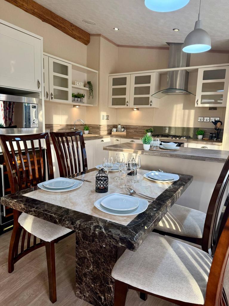 Step into the ultimate blend of space, style and sophistication with this stunning luxury holiday lodge, designed for those who appreciate comfort and quality in every detail. Boasting four sets of French doors, skylights and full picture windows, flooding the lodge with natural sunlight.