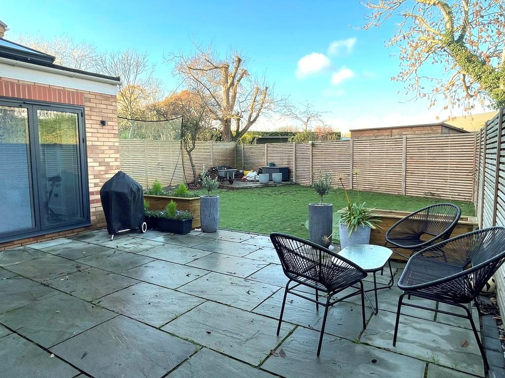 REAR GARDEN Enclosed rear garden with patio seating area, artificial grass, outside tap and lights.