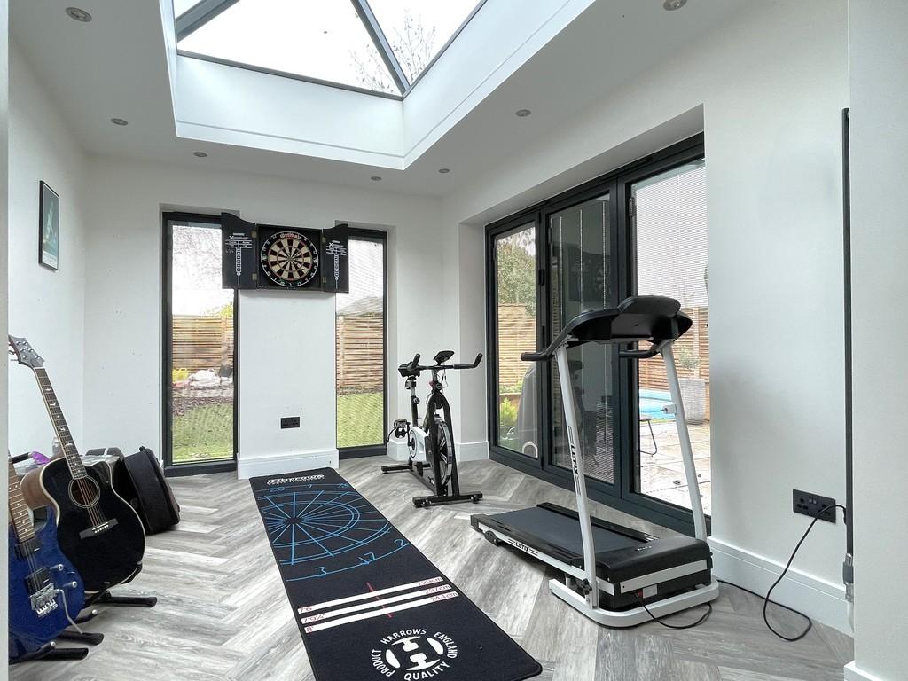 RECEPTION ROOM 11' 09" x 9' 02" (3.58m x 2.79m) Bi-fold doors to rear garden, two picture windows to rear, ceiling lantern, LVT flooring, spotlights, vertical radiator.