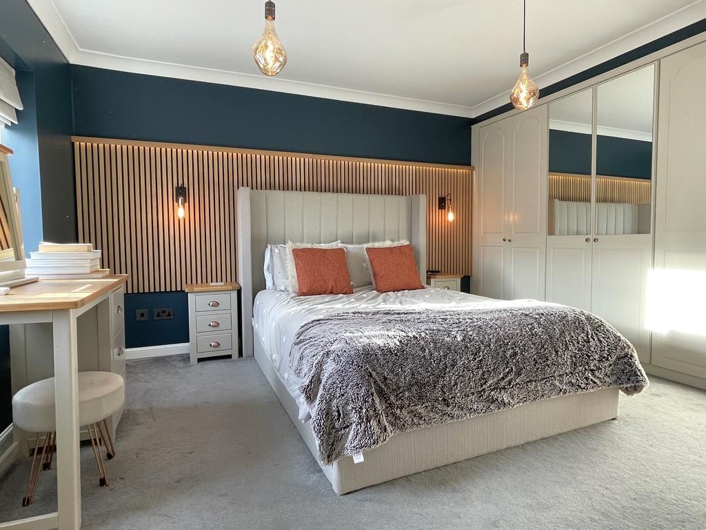 BEDROOM ONE 14' 02" x 11' 03" (4.32m x 3.43m) Window to front, fitted wardrobes, door to: