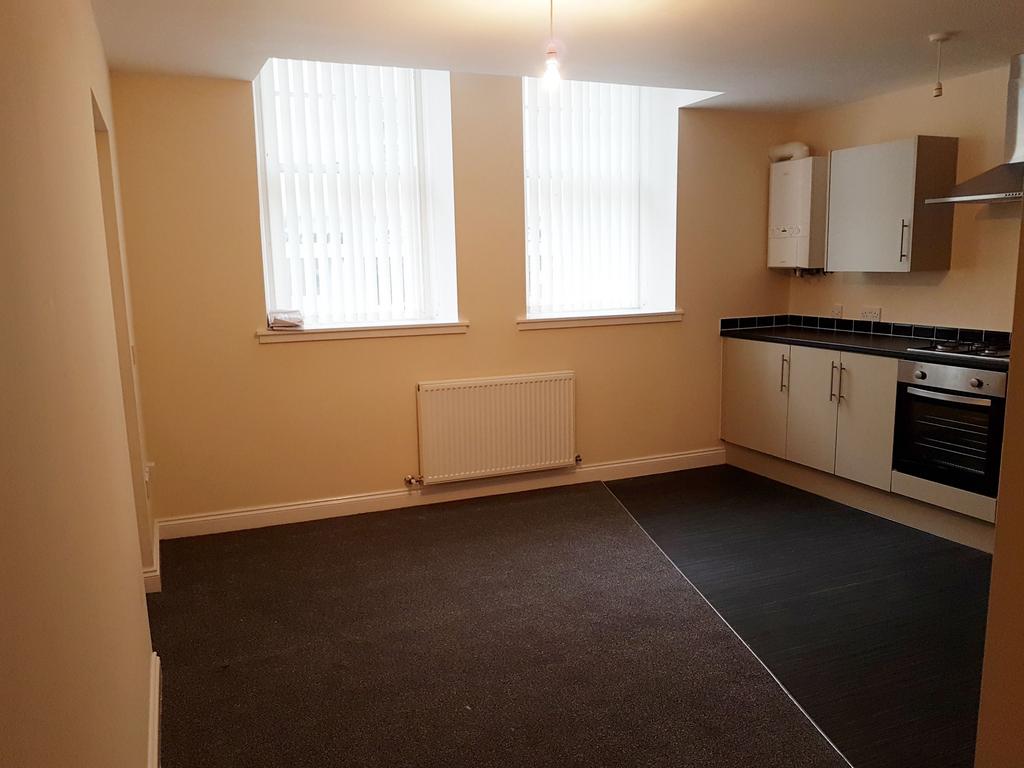 ACCOMMODATION: Lounge/kitchen with integrated electric oven, extractor hood and gas hob. Two bedrooms. Bathroom with shower over bath.