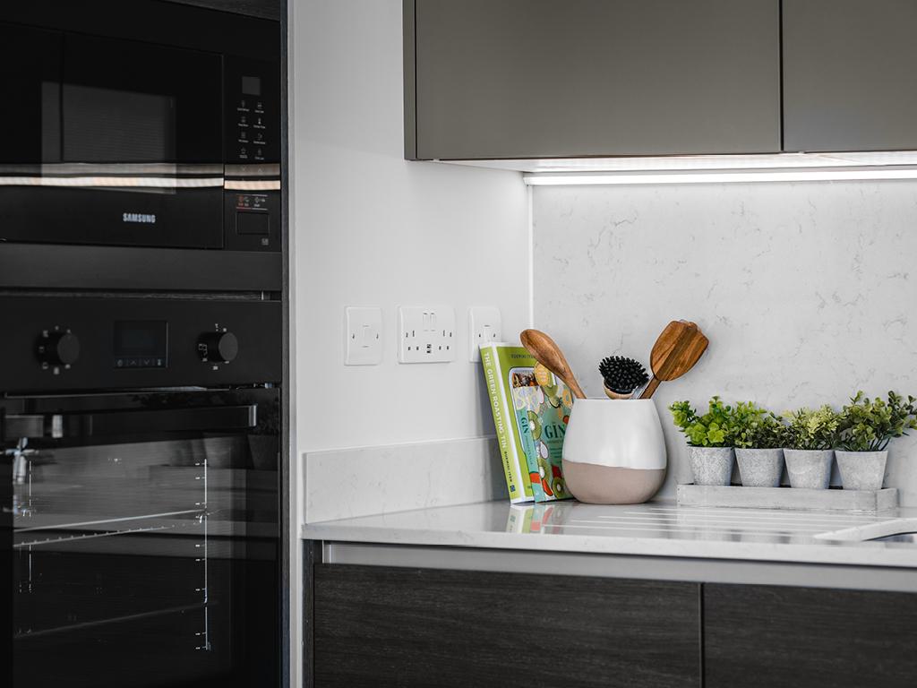 Stylish bedrooms including bespoke fitted wardrobes with full height mirror, hanging rail and storage. Double ottoman beds with storage, feature headboard and 1,000 individual pocket sprung mattress made from natural materials and marble effect bedside tables.