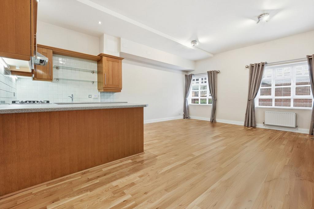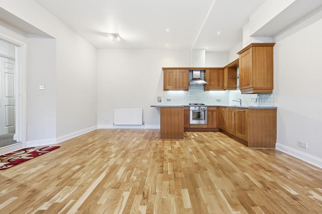 Inside, the apartment is finished to a high standard throughout. The impressive open-plan kitchen/living area features high ceilings, integrated appliances and excellent natural light. There are two bedrooms, both with fitted wardrobes, along with a useful store cupboard and a modern bathroom suite.