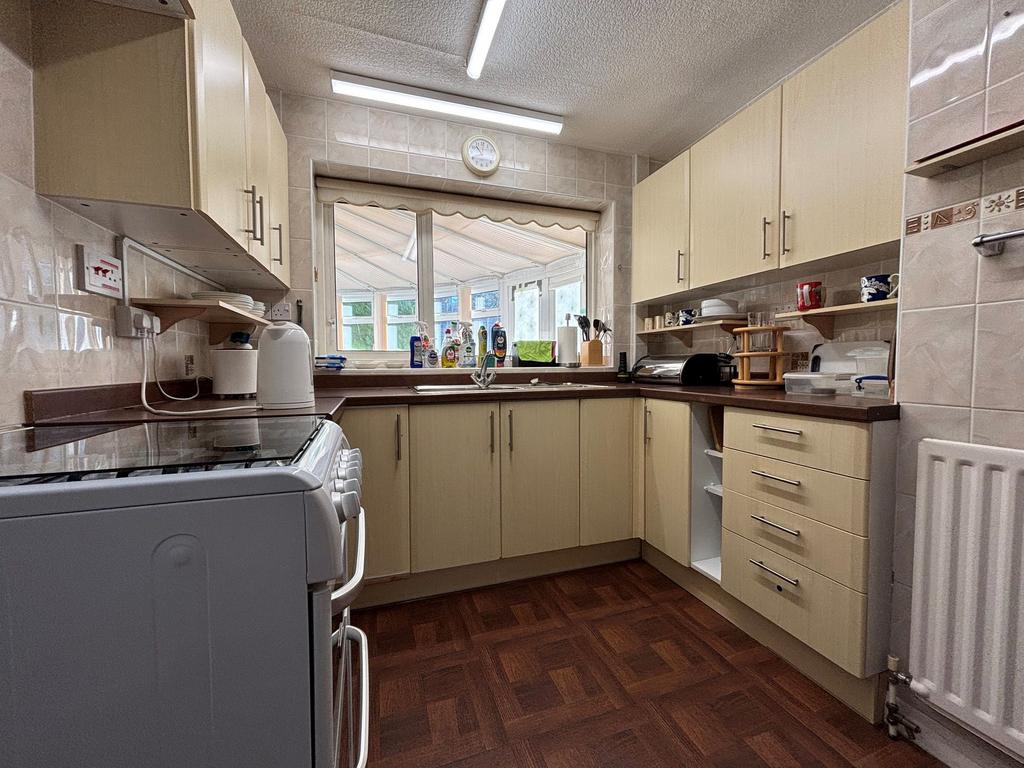 Double glazed window and doors to rear garden, space for washing machine, single bowl stainless steel sink and drainer, radiator.