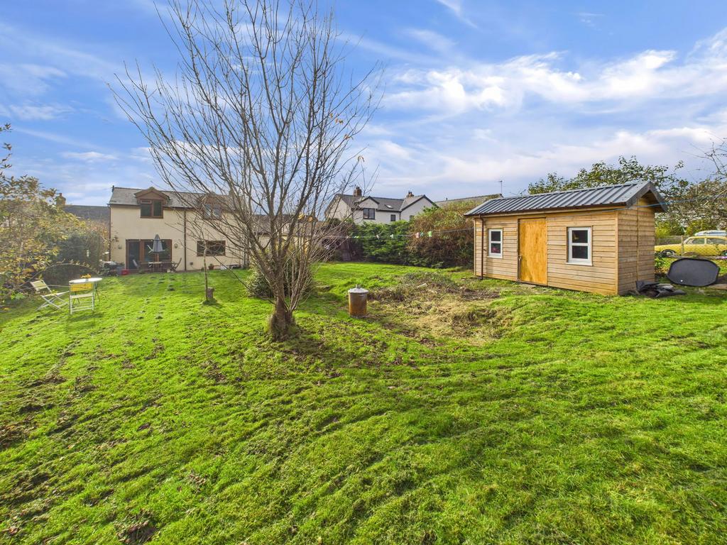Outside - Outside, the property offers a generous and versatile setting that perfectly complements the internal space. To the front, a private driveway leads to a substantial detached garage, providing secure parking as well as excellent potential for storage, a workshop, or hobby space. A low stone wall frames the frontage, giving the home a charming, established feel as it sits neatly within the street scene. The rear garden is a standout feature an expansive, open lawn that offers superb scope for families, gardening enthusiasts, or anyone who enjoys spending time outdoors. With plenty of room for children to play, for seating areas to be arranged, or for landscaping projects to be explored, it’s a truly adaptable outdoor space. A paved terrace sits just outside the kitchen–diner, creating an ideal spot for summer meals, barbecues, or simply unwinding in the sunshine. Positioned to one side of the garden is a useful timber outbuilding, which could serve as a workshop, garden studio, or additional storage depending on need. Mature planting along the boundaries provides a sense of privacy while still allowing the space to feel bright and open. Altogether, the outside areas offer a wonderful balance of practicality and opportunity perfect for modern family living, entertaining, and enjoying the changing seasons.