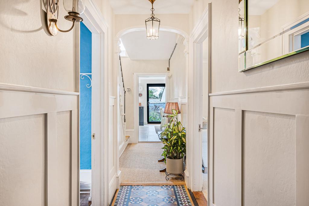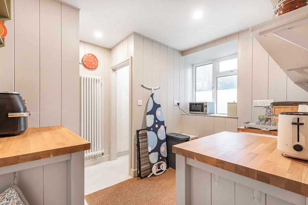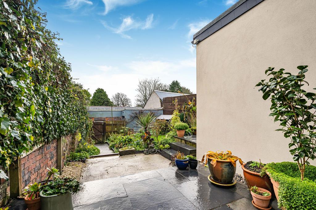 The rear garden is beautiful south facing and enjoys a stunning view of the Church. There is a sun terrace and further patio, lawned area with established borders and pretty flower beds. A path leads down to the rear annex. Steps lead down to the rear access lane which is gated and secure.