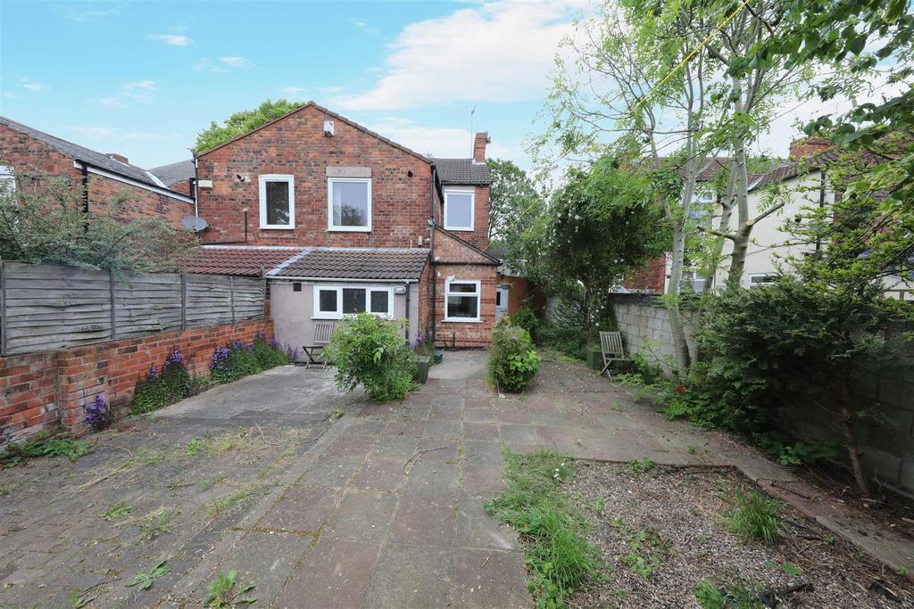 Outside - a delightful south facing rear garden mainly paved with patio area for furniture and a variety of shrubbery and trees, enclosed by brick wall