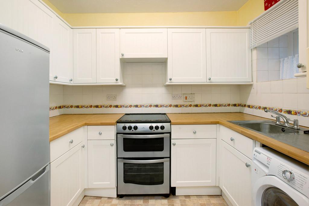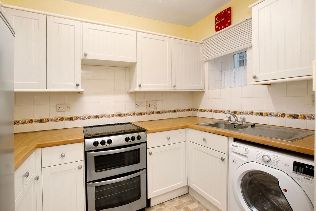 With matching range of wall and base units, timber effect roll top work surface over, inset stainless steel sink drainer, space for electric cooker, space and plumbing for washing machine and fridge freezer, tiled splash backs, uPVC double glazed window to rear.