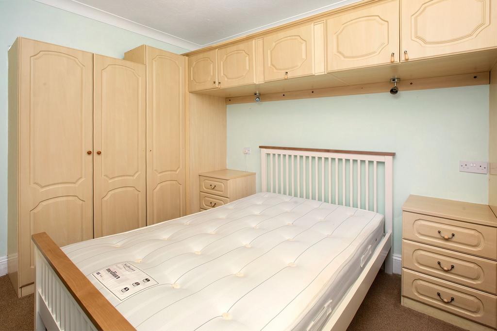With doors to principal rooms and uPVC double glazed window to front. Night storage heater. Power point. Emergency pull cord system. Door to airing cupboard with factory lagged hot water cylinder. Door to storage cupboard with hanging rail and timber shelving. Door to further storage cupboard with timber shelving. Multi-paned timber door through to…